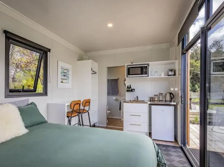 Rural retreat - Tahi cabin bietet einen ruhigen Aufenthalt in der Natur. Die Unterkunft liegt am Fluss Mangawhero in Ohakune, nahe dem Tongariro Nationalpark. Gäste genießen die friedliche Atmosphäre sowie die schöne Landschaft. Die Kabine verfügt über kostenlose Parkplätze und WLAN.